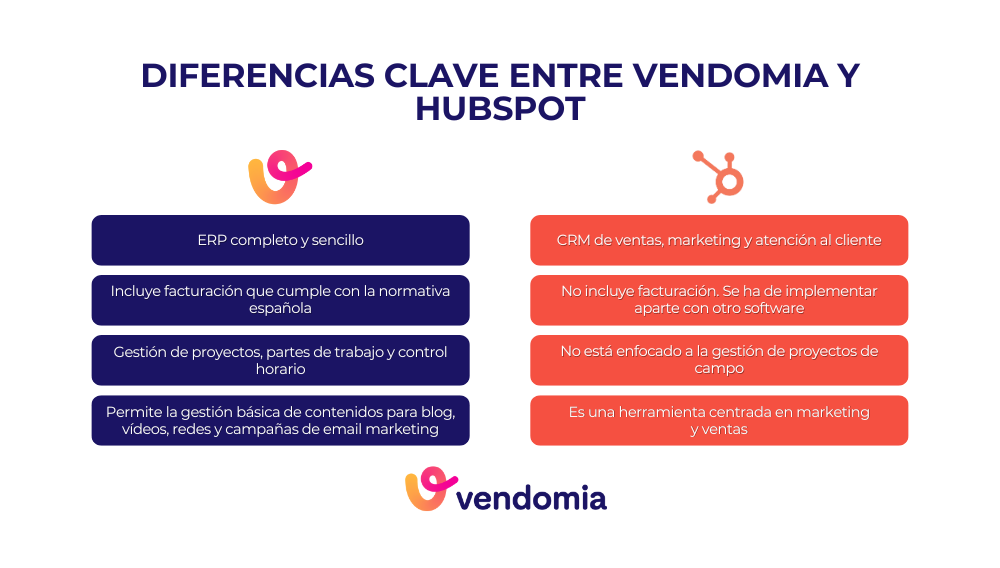 Tabla comparativa resumida entre Vendomia y HubSpot
